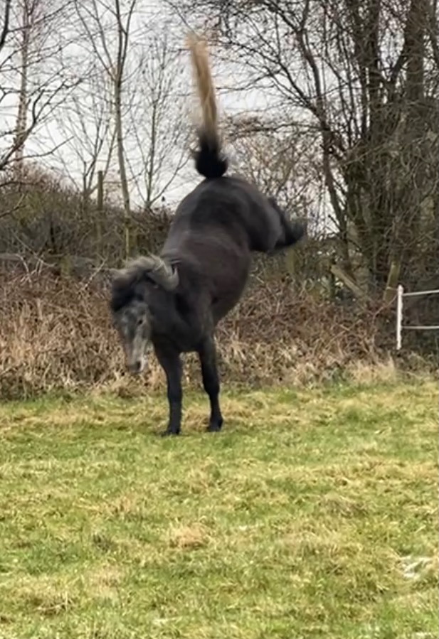 Jackie and Emma from Clarkstown Stud had an agreement: if the foal was a filly, she would stay with Jackie; if a colt, he would go to Emma. So Mac went to Sands Farm, where he spent his early years growing up with a lively herd of around 12 young ponies.